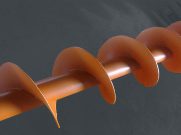 Шнек конвейера используется в шнековых транспортерах (винтовых конвейерах) выполняя роль транспортирующего груз элемента. Пригоден для трансопртирования мелких сыпучих или зернистых грузов. Перемещение груза происходит путем вращения шнека вдоль желоба или трубы конвейера. Шнек приводится в дивжение мотор-редуктором.