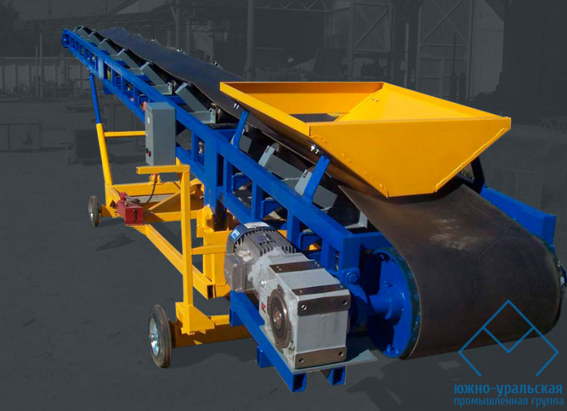 Конвейер (с длинной транспортировки от 5 до 15 м) перемещает грузы по транспортировочной ленте (возможна установка ленты с шириной: 500 мм, 600 мм, 650 мм, 800 мм), натянутой на опорные ролики и тяговые барабаны (с обеих сторон КЛП), приводимые в движение мотор-редуктором. Роликовые опоры могут быть выполнены в прямом горизонтальном исполнении или желобчатом. Передвижение конвейера по складской территории осуществляется за счет колесной пары.