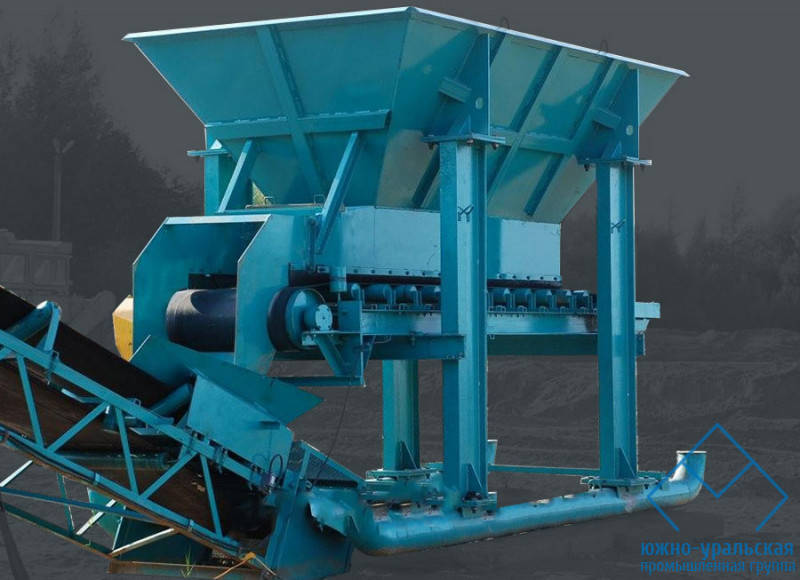 Конструктивно он представляет собой транспортер с неподвижными бортами, на котором могут устанавливаться шиберные заслонки, с индивидуальным приводом. Производительность питателя регулируется скоростью подачи несущего органа. Характерными чертами ленточных питателей являются: